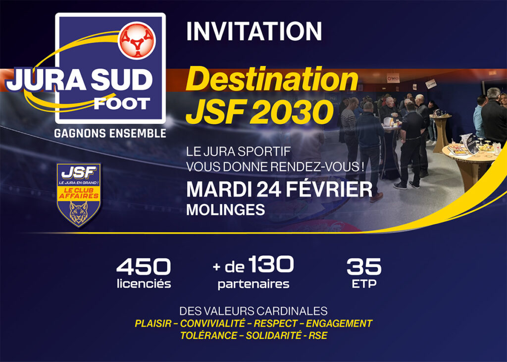 Vous souhaitez développer votre réseau, contactez-nous sur partenaires@jurasudfoot.fr ou au 06.71.59.65.13 afin de rejoindre notre Club Affaires