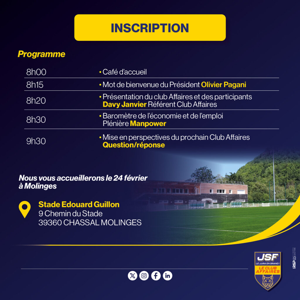 Le Jura sportif vous donne rendez-vous le mardi 24 février à Molinges pour notre premier évènement du Club Affaires.